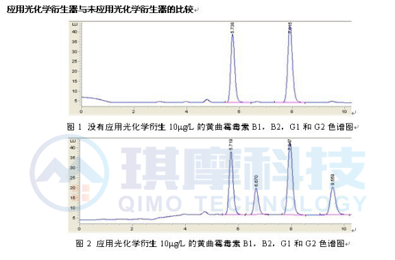 8.使用光化學柱后衍生器可在線實現對黃曲霉毒素B1G1進行衍生,不需要任何化學試劑。 光化學在線衍生系統,不僅幫助您獲得重復性好的結果,還可以幫助您降低化學物質的污染和危害。